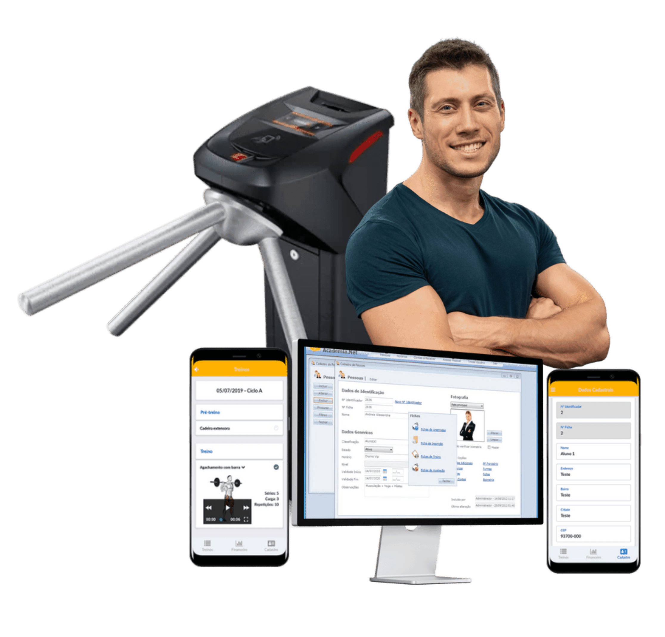 Projetos completos de controle de acesso para academias elaborados sob medida.
